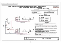 Схема 6. Схема радиаторного отопления помещений нескольких этажей. Автоматическое регулирование температуры в помещениях. Горизонтальная двухтрубная разводка.